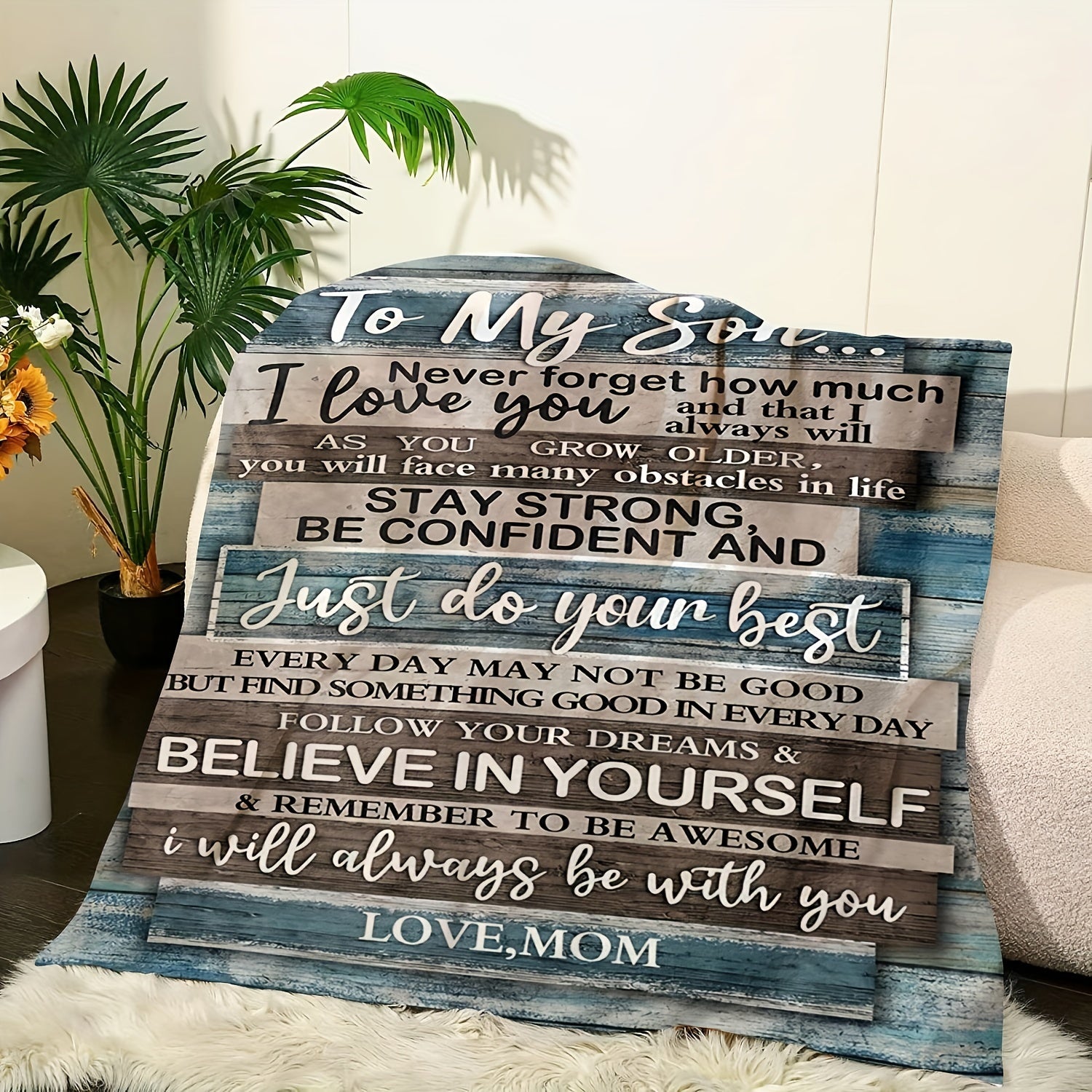 This 1pc Soft Flannel Blanket is the perfect gift from a mother to her son. With its warm and cozy texture, it's perfect for snuggling up on the couch, bed, or sofa. Let your son know how much he means to you with this thoughtful and comfortable blanket.